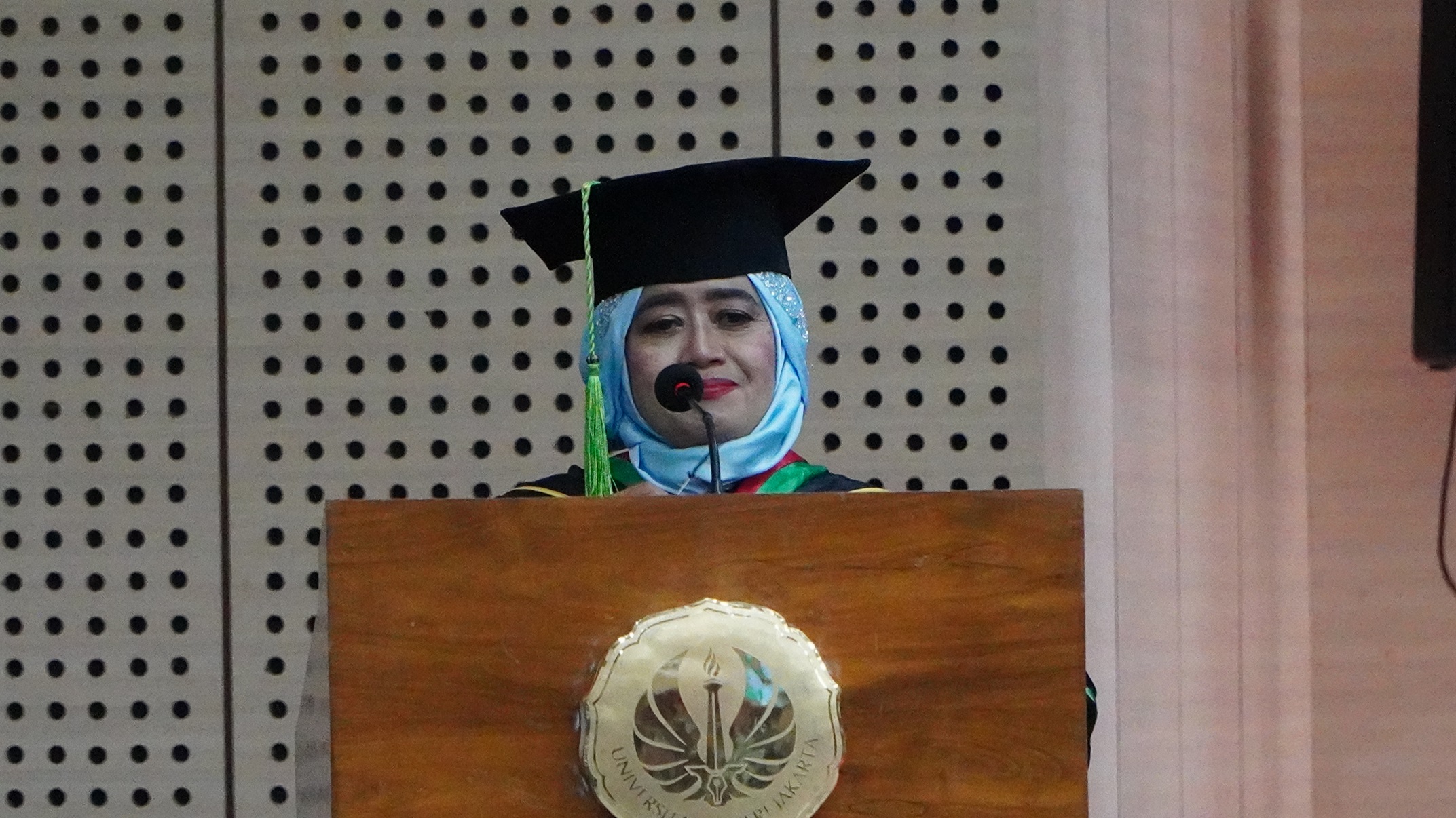 Prof. Dr. Wahyu Sri Ambar Arum MA membawakan orasi ilmiah mengenai Transformasi Manajemen Pembelajaran melalui Teknologi Artificial Intelligence (AI ): Menyongsong Era Pendidikan Society 5.0. Prof Dr. Wahyu Sri Ambar Arum MA menekankan bahwa AI bukan sekadar alat bantu, melainkan mitra strategis dalam menciptakan sistem pembelajaran yang adaptif, personal, dan humanis.