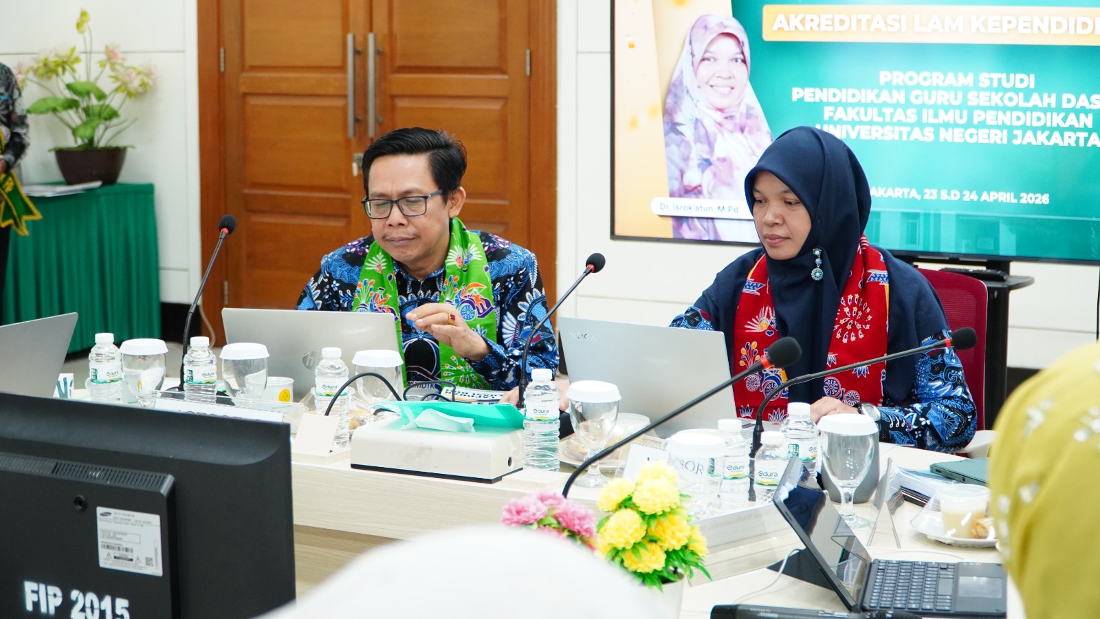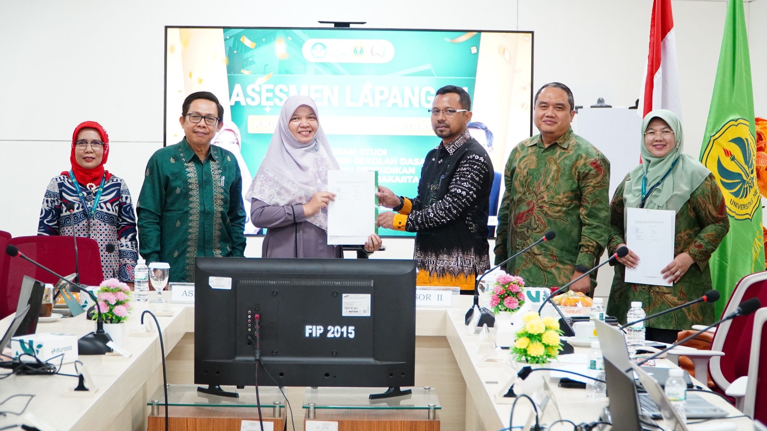 Asesmen lapangan ini menghadirkan tim asesor dari Lembaga Akreditasi Mandiri Kependidikan (LAMDIK), yaitu Dr. Isrok’atun, M.Pd. dan Dr. Desyandri, S.Pd., M.Pd. Kehadiran tim asesor disambut oleh jajaran pimpinan universitas dan fakultas, di antaranya Sekretaris Universitas Negeri Jakarta Prof. Dr. Suyono, M.Si., Wakil Rektor Bidang Riset, Inovasi, dan Sistem Informasi Prof. Dr. Fahrurrozi, M.Pd., Dekan FIP UNJ Dr. Aip Badrujaman, M.Pd., serta Ketua Senat FIP Prof. Dr. Asep Supena, M.Psi.
