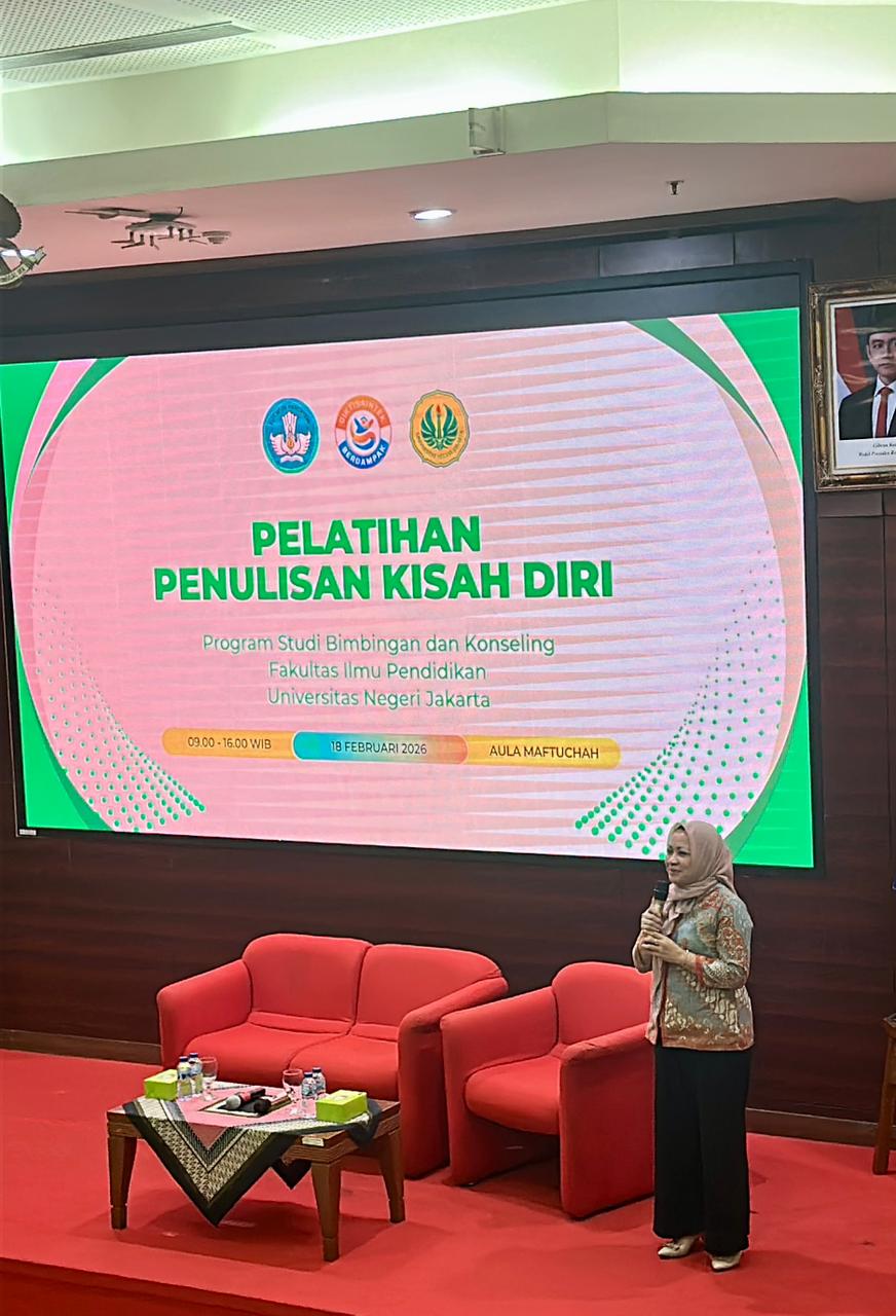 Sebanyak 128 mahasiswa Bimbingan dan Konseling (BK) angkatan 2025 mengikuti kegiatan Pelatihan Penulisan Kisah Diri yang diselenggarakan pada Rabu, 18 Februari 2026, bertempat di Aula Maftuchah Yusuf, Gedung Dewi Sartika, Kampus A Universitas Negeri Jakarta (UNJ). Kegiatan ini menjadi bagian dari fasilitasi akademik Program Studi sebagai pengantar mata kuliah Kajian Budaya dalam Pendidikan yang akan ditempuh mahasiswa pada semester mendatang.
