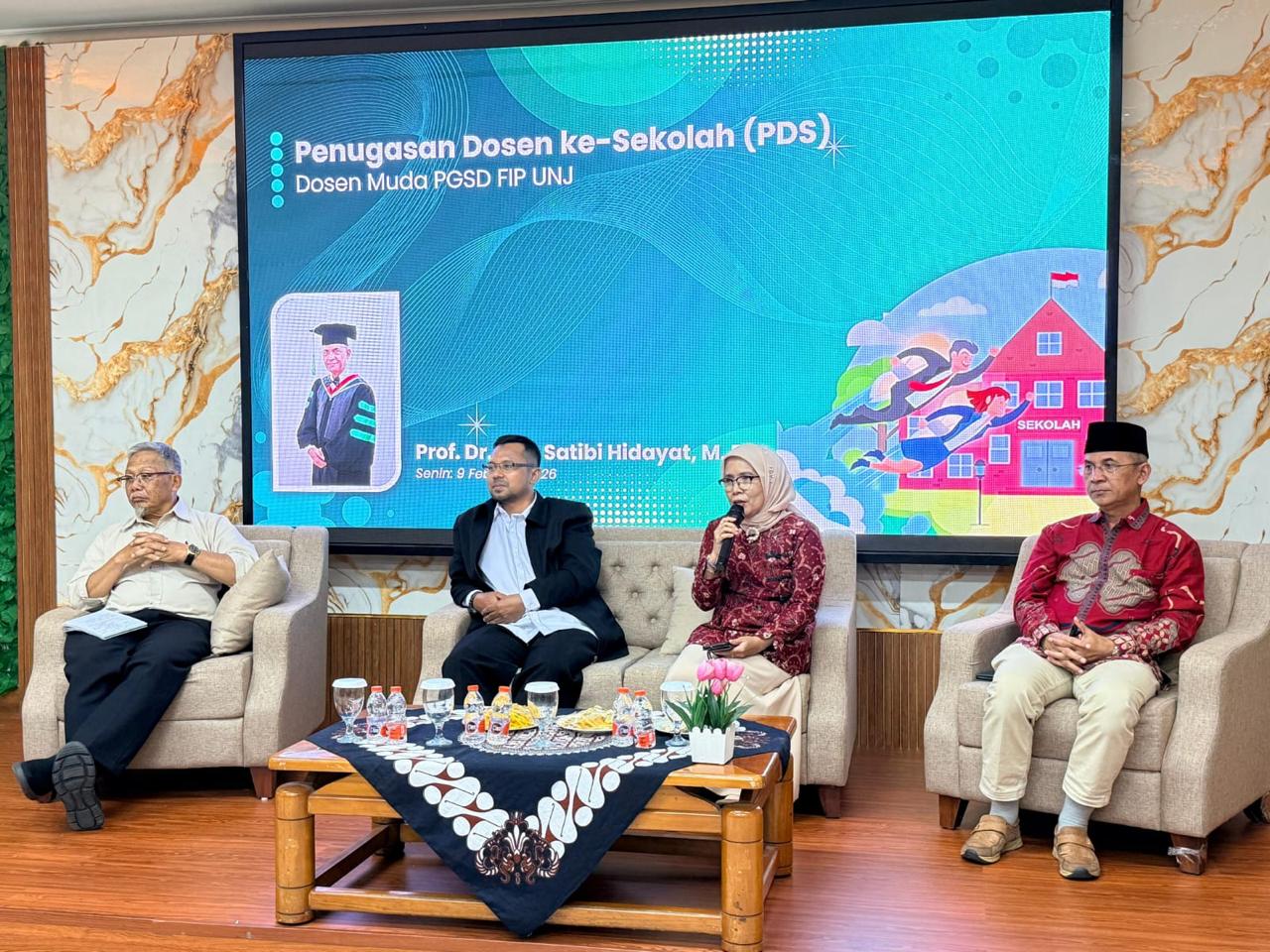 Hadir sebagai narasumber, Prof. Dr. Otib Satibi Hidayat, M.Pd., dosen Program Studi S1 PGSD FIP UNJ, yang memberikan pembekalan mengenai strategi pembelajaran inovatif serta penguatan refleksi praktik mengajar di sekolah dasar.