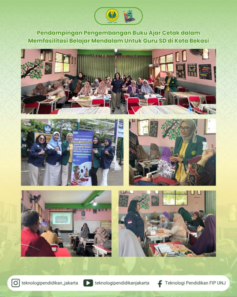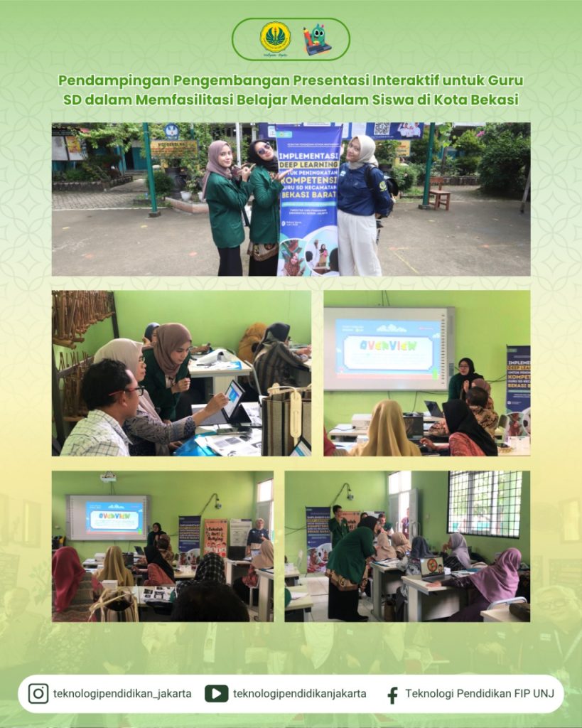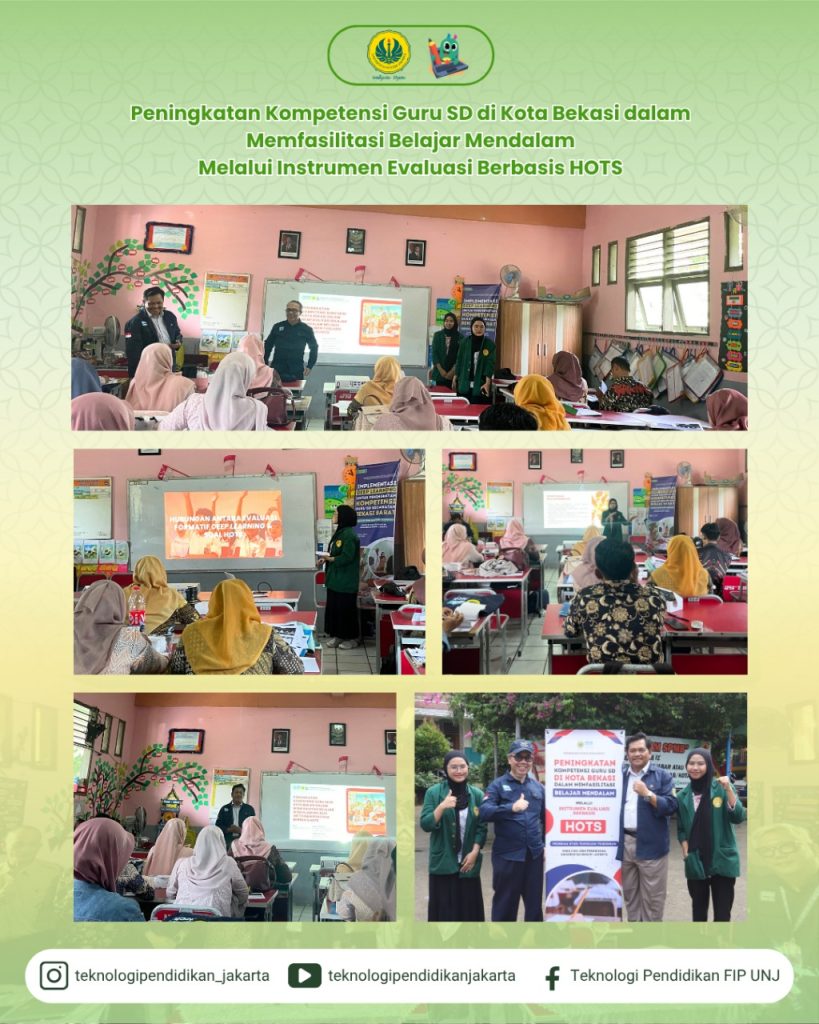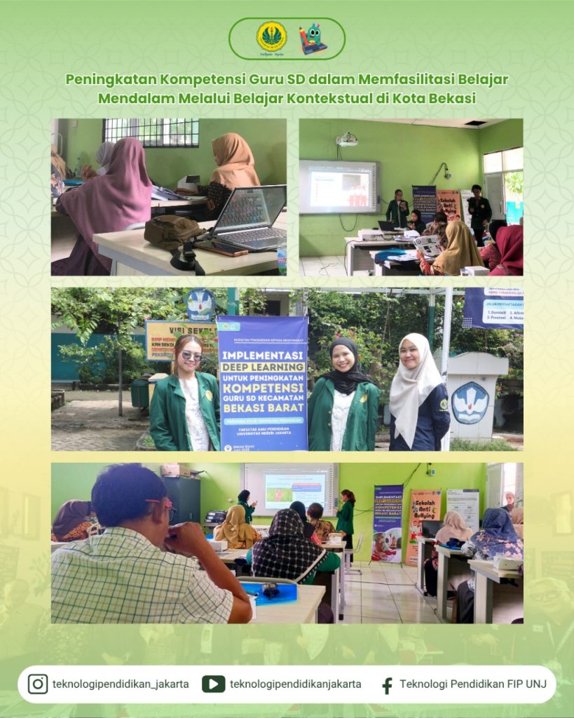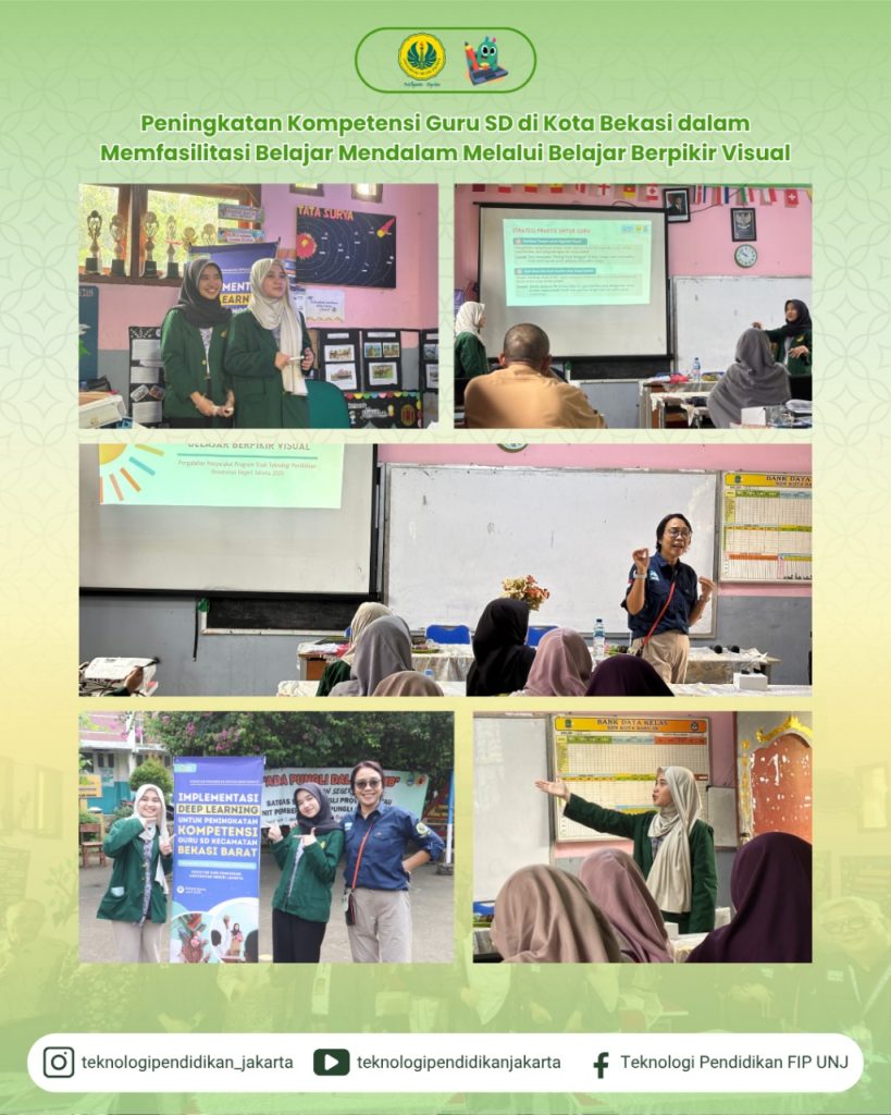 Program Studi Teknologi Pendidikan Universitas Negeri Jakarta (UNJ) menyelenggarakan kegiatan Pengabdian Kepada Masyarakat (PKM) pada Sabtu, 21 Juni 2025, bertempat di SDN Kota Baru IX, Kota Bekasi, Jawa Barat. Kegiatan ini diikuti oleh 74 guru dari 64 sekolah dasar yang berada di wilayah Kecamatan Bekasi Barat, Kota Bekasi.
